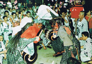 この獅子舞は7月15日、日枝神社の夏季祭当日に奉納される『舞』で、古来より悪疫除・無病息災・家内安全の祈願という、信仰的行事である。起源は詳かではないが、北条氏照(1540~1590)が所沢市字城に城郭を築造し、その守護神として奉斎されたのが、当地に受けつがれるようになったと伝えられている。